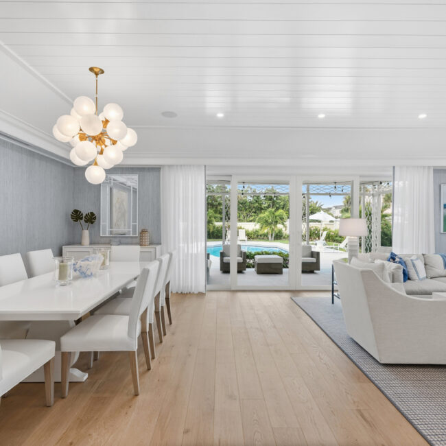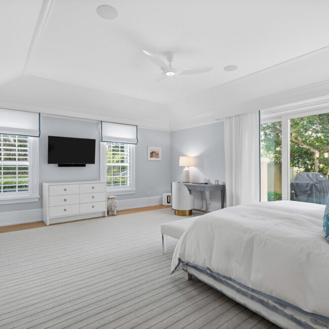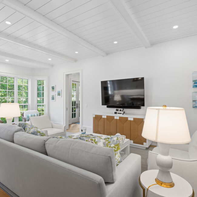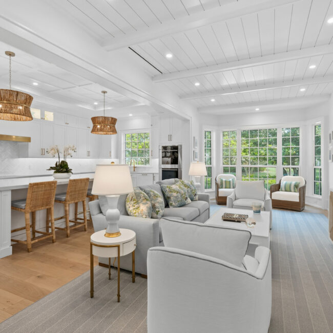 John’s Island. This exceptional residence was fully renovated in 2024 and sits just steps from the beach. Architect James Stein has masterfully reimagined the home into a sophisticated coastal retreat, blending timeless design with modern comfort.
