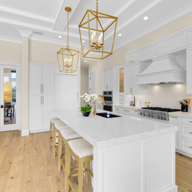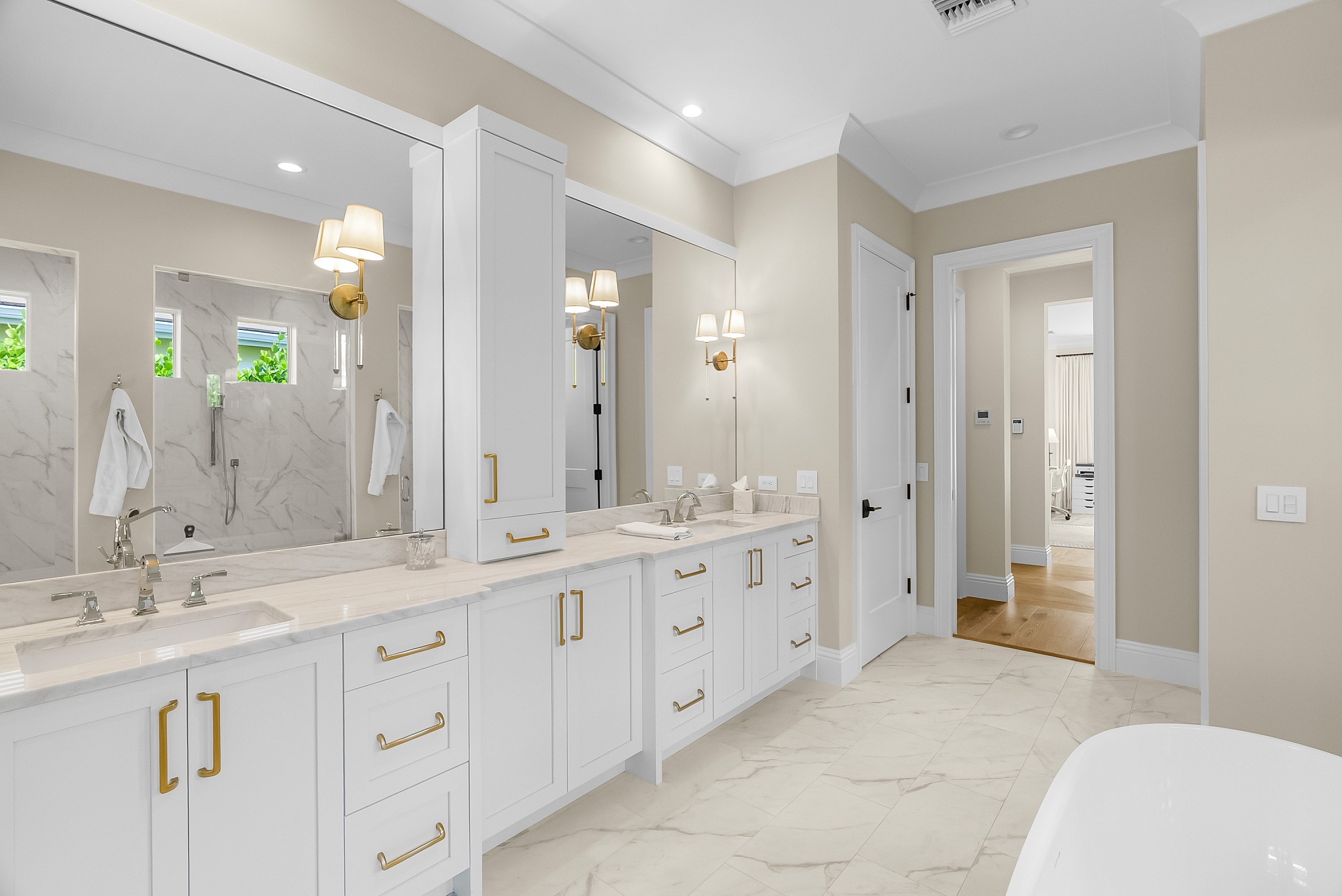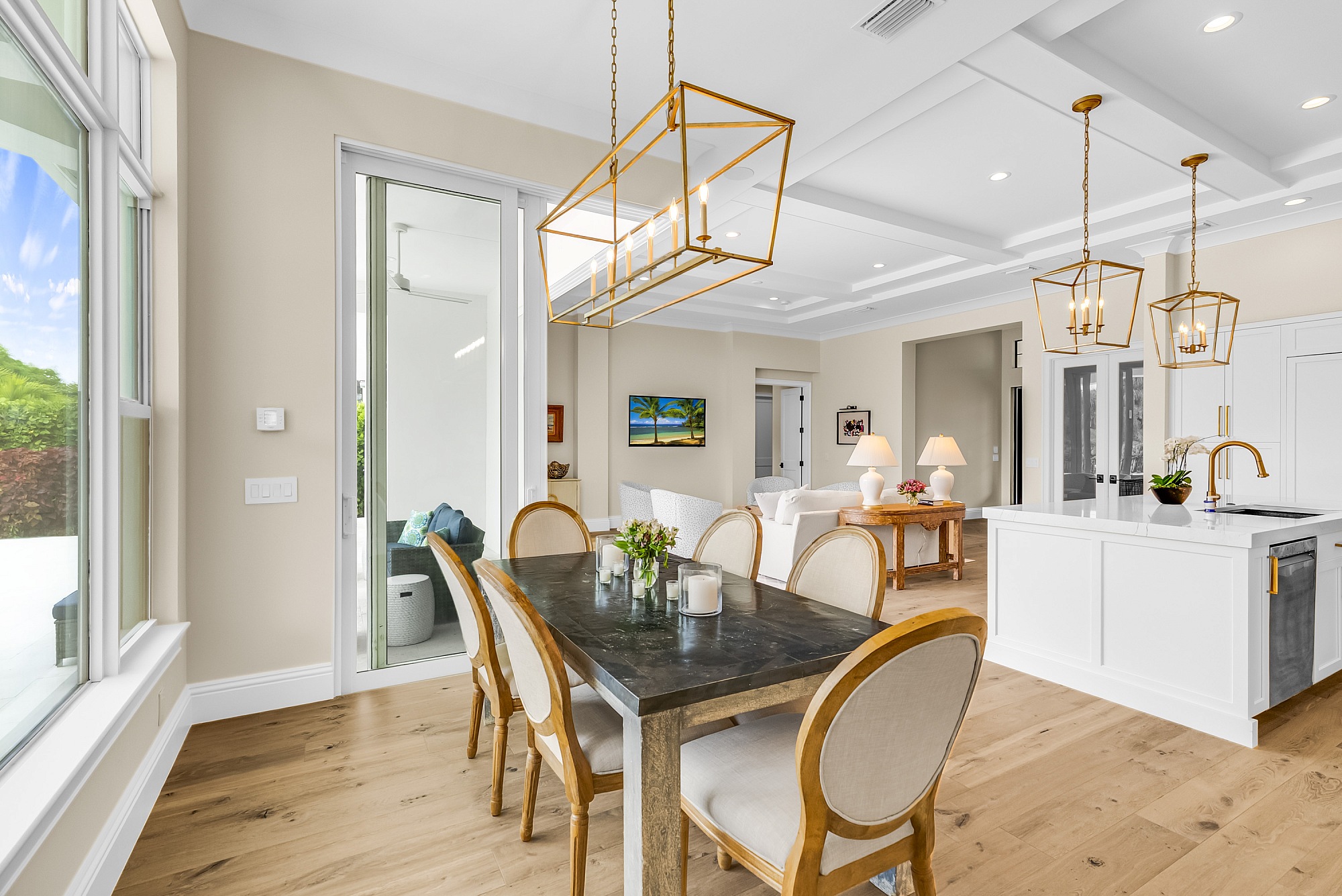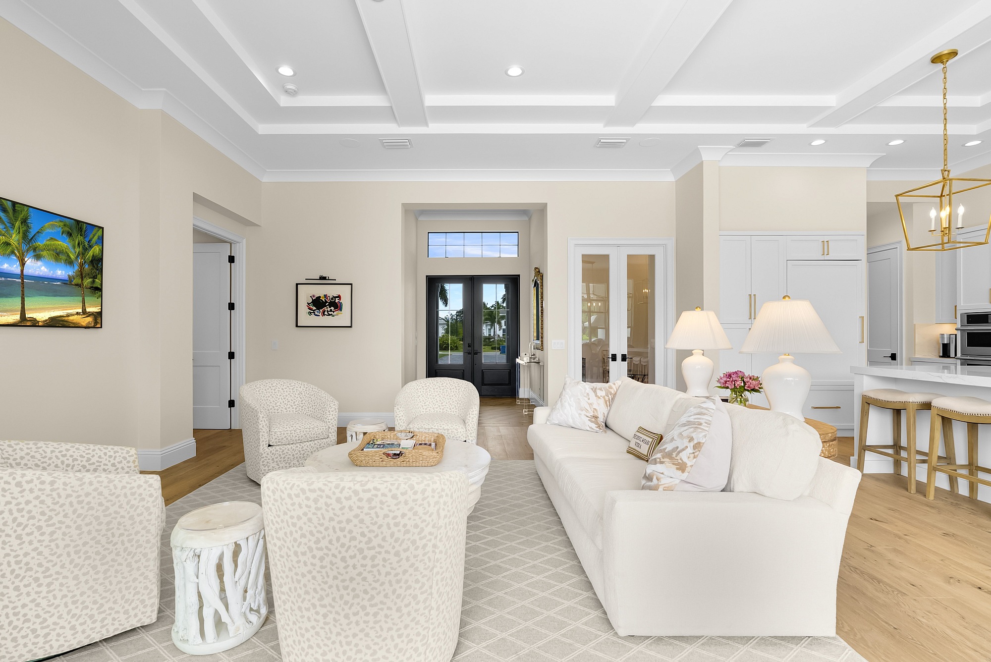 This stunning 3-bedroom, 3.5 -bath home with a den and bonus room showcases European White Oak floors throughout the main living areas and primary suite. The gourmet kitchen features a center island, custom cabinetry, a gas range, and top-tier appliances—perfect for both everyday living and entertaining. Enjoy the ultimate indoor-outdoor lifestyle with telescoping sliders that open to a resort-style pool with sun shelf, waterfall spa, and a fully equipped outdoor kitchen with gas grill—all oriented to take advantage of the desirable southern exposure.