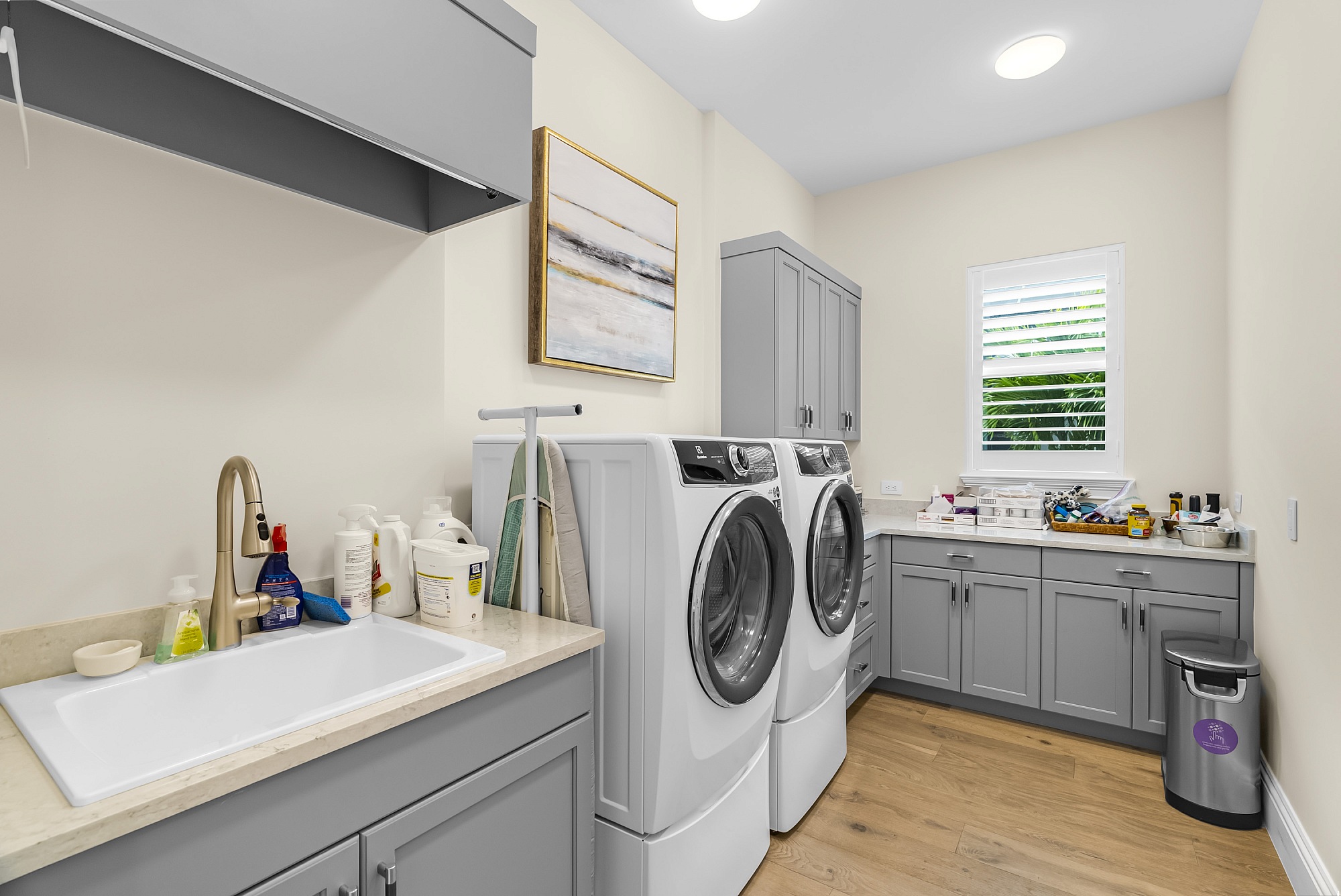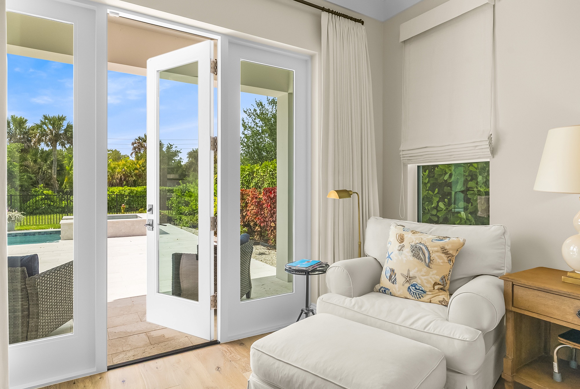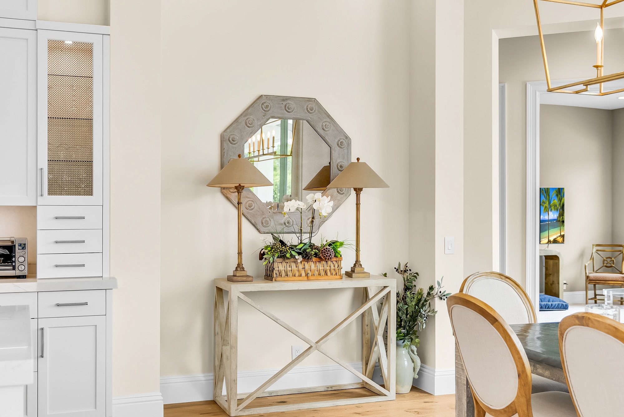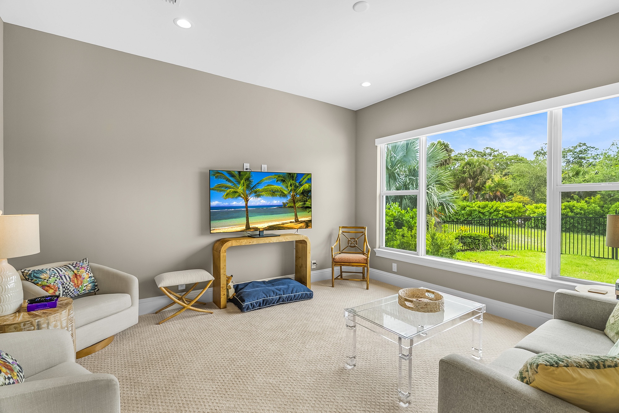 This stunning 3-bedroom, 3.5 -bath home with a den and bonus room showcases European White Oak floors throughout the main living areas and primary suite. The gourmet kitchen features a center island, custom cabinetry, a gas range, and top-tier appliances—perfect for both everyday living and entertaining. Enjoy the ultimate indoor-outdoor lifestyle with telescoping sliders that open to a resort-style pool with sun shelf, waterfall spa, and a fully equipped outdoor kitchen with gas grill—all oriented to take advantage of the desirable southern exposure.
