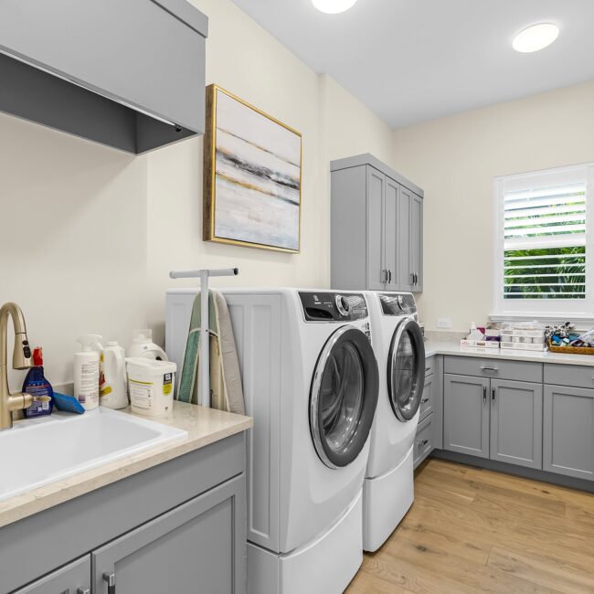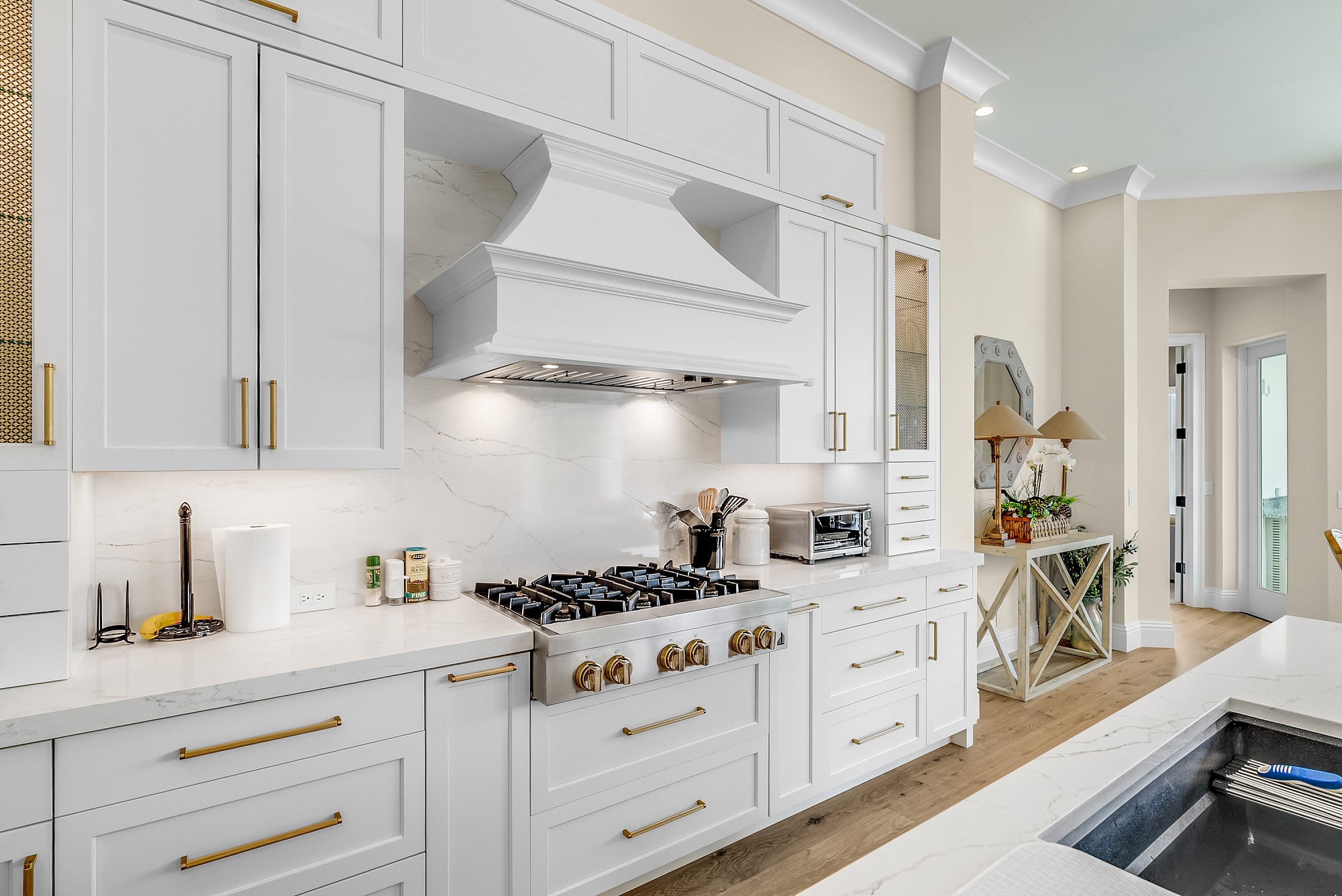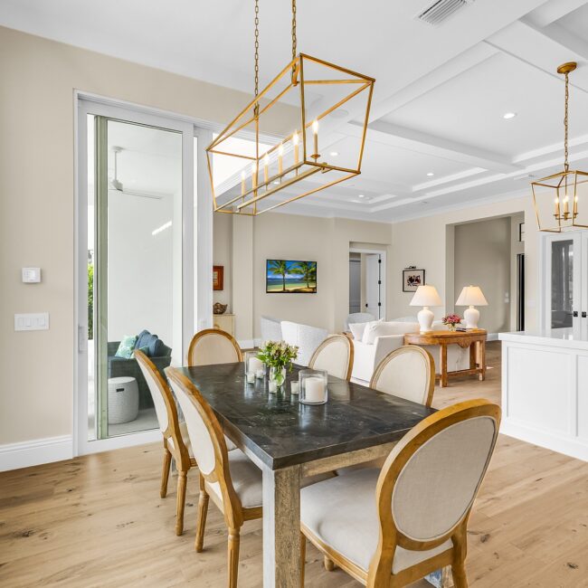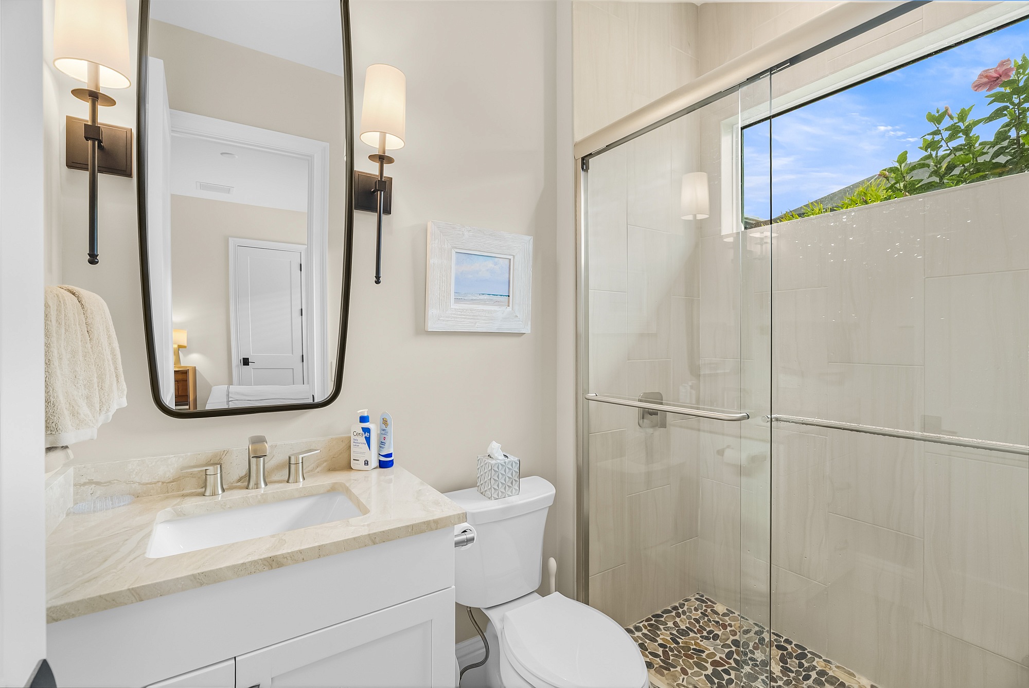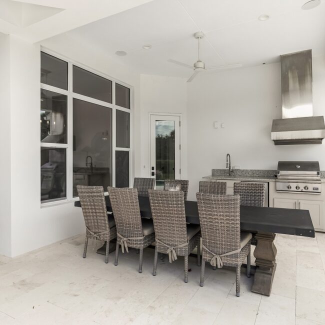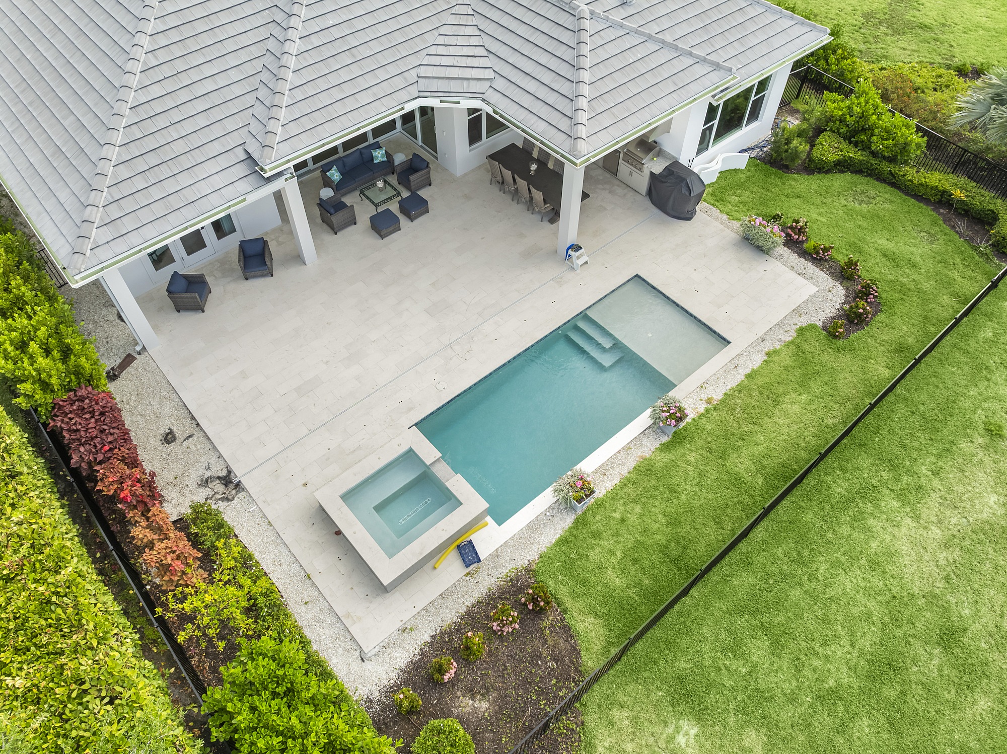 This stunning 3-bedroom, 3.5 -bath home with a den and bonus room showcases European White Oak floors throughout the main living areas and primary suite. The gourmet kitchen features a center island, custom cabinetry, a gas range, and top-tier appliances—perfect for both everyday living and entertaining. Enjoy the ultimate indoor-outdoor lifestyle with telescoping sliders that open to a resort-style pool with sun shelf, waterfall spa, and a fully equipped outdoor kitchen with gas grill—all oriented to take advantage of the desirable southern exposure.