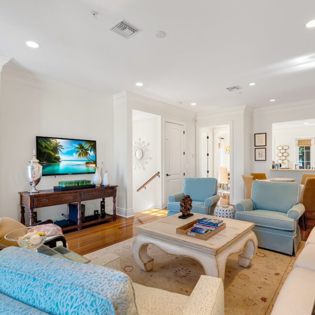 With 3 bedrooms, 3.5 baths, and a private elevator, this turnkey residence blends refined style with everyday comfort. Features include hardwood floors, a versatile den or office, and a generous two-car garage. Offered fully furnished and thoughtfully designed with high-end finishes, it’s a move-in-ready retreat by the sea.
