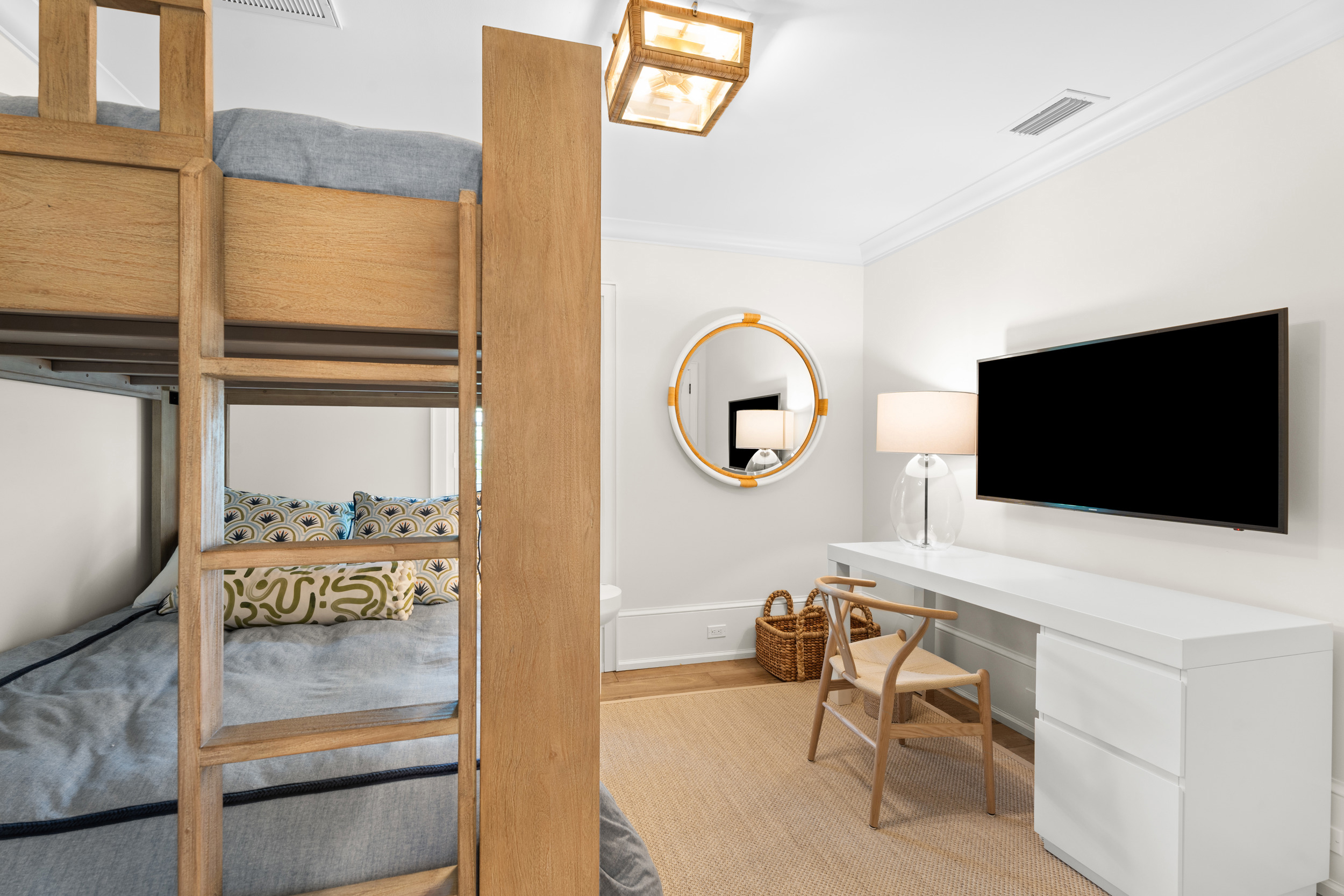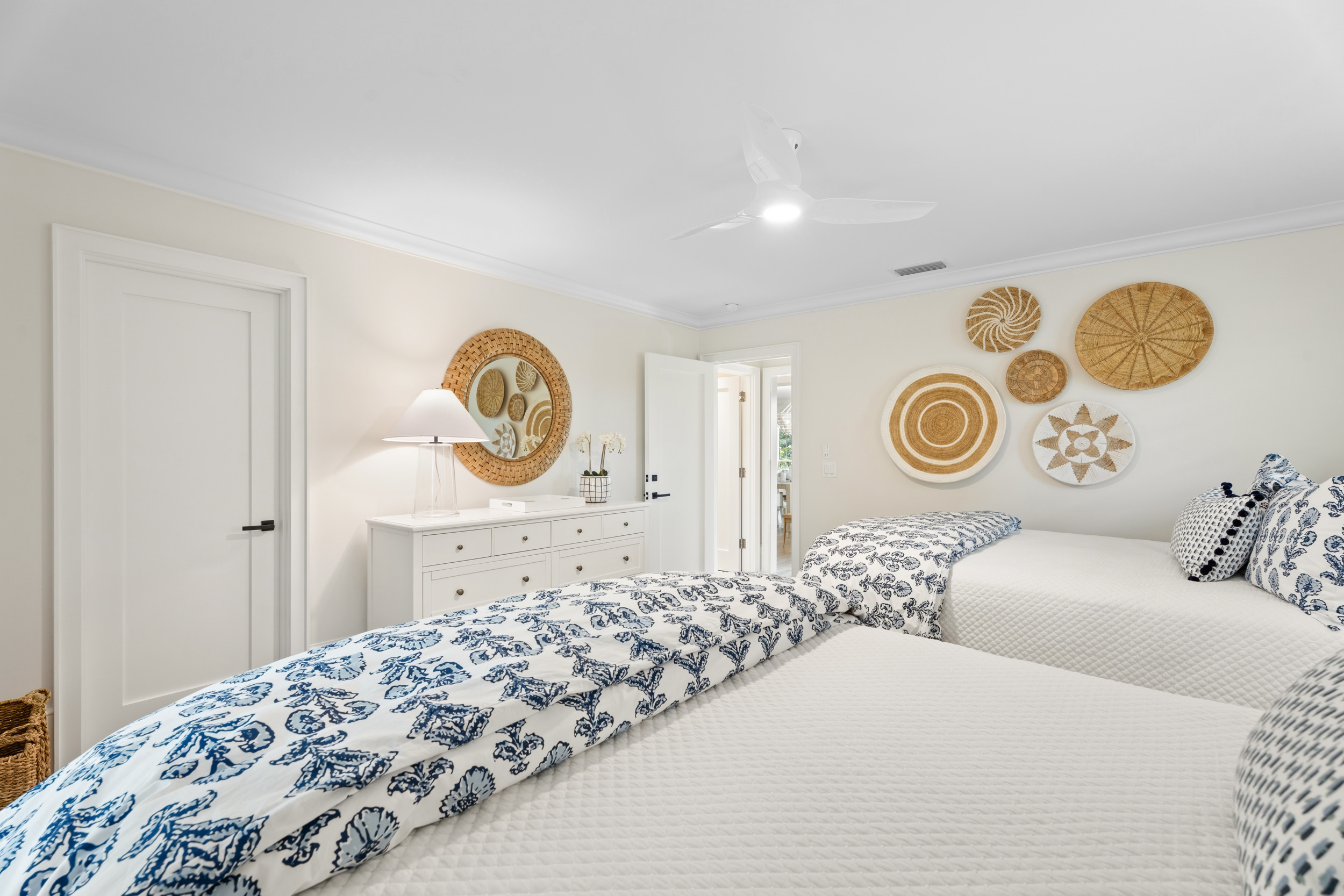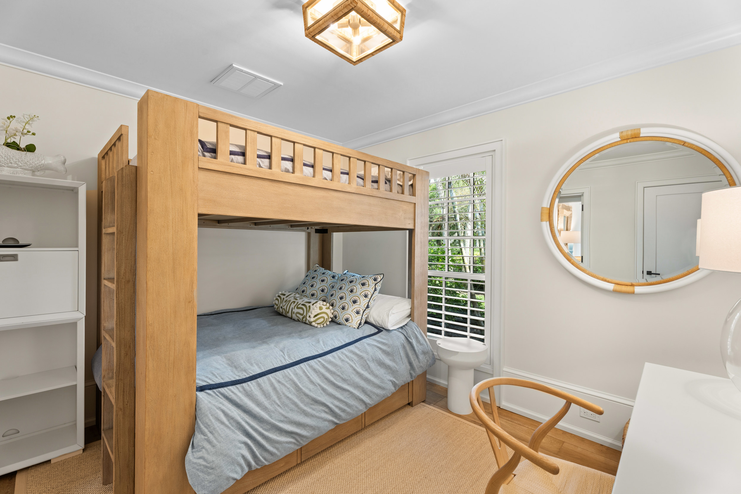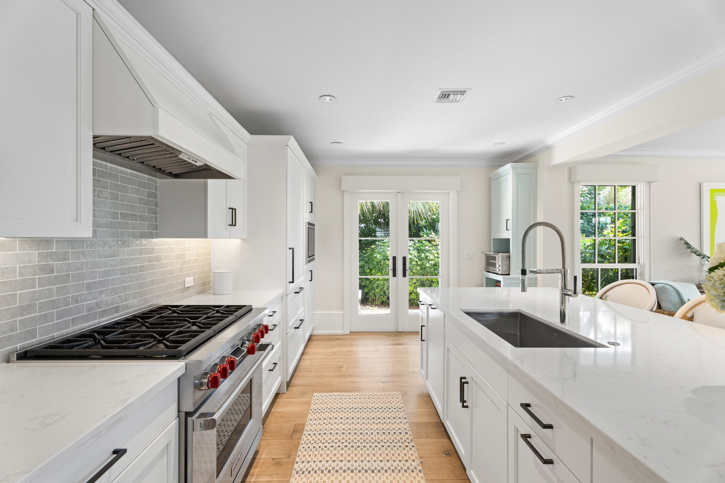 At the heart of the home, a light-filled, open-concept kitchen with an integrated dining area flows effortlessly into multiple inviting living spaces, offering a seamless layout ideal for both relaxed everyday living and sophisticated entertaining. Rich engineered white oak flooring runs throughout, complementing custom millwork, built-ins, and a well-appointed gas range that will delight any home chef. Generous closet space and smart storage solutions further enhance the home’s livability.Originally renovated in 2018, the residence has been meticulously maintained, striking a perfect balance between classic design and modern convenience. Every detail has been carefully considered to create a warm yet elevated atmosphere.Step outside to the expansive patio, where a striking fire bowl sets the stage for unforgettable evenings. Here, you’ll enjoy breathtaking sunsets overlooking the tranquil surroundings—an idyllic backdrop for gathering with family and friends or simply unwinding in total serenity.