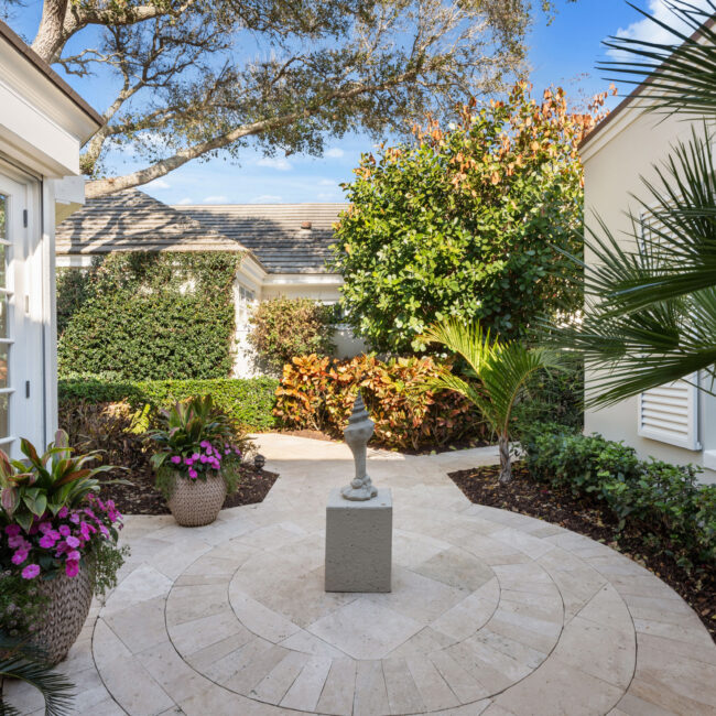 An exceptional courtyard residence just steps from the pristine beaches of John’s Island, this beautifully updated coastal retreat captures the essence of refined island living. Designed around a private interior courtyard, the home seamlessly blends indoor and outdoor spaces, creating a serene sanctuary ideal for both quiet relaxation and vibrant entertaining.