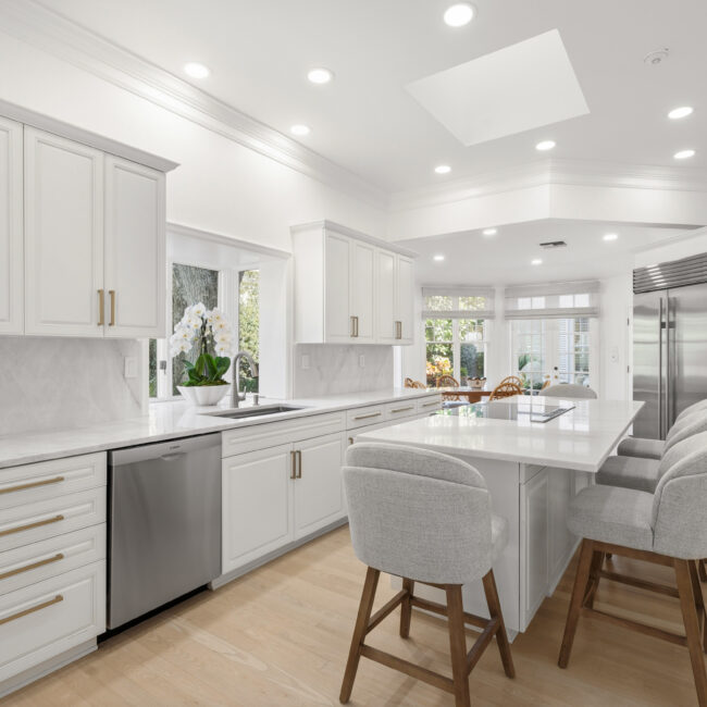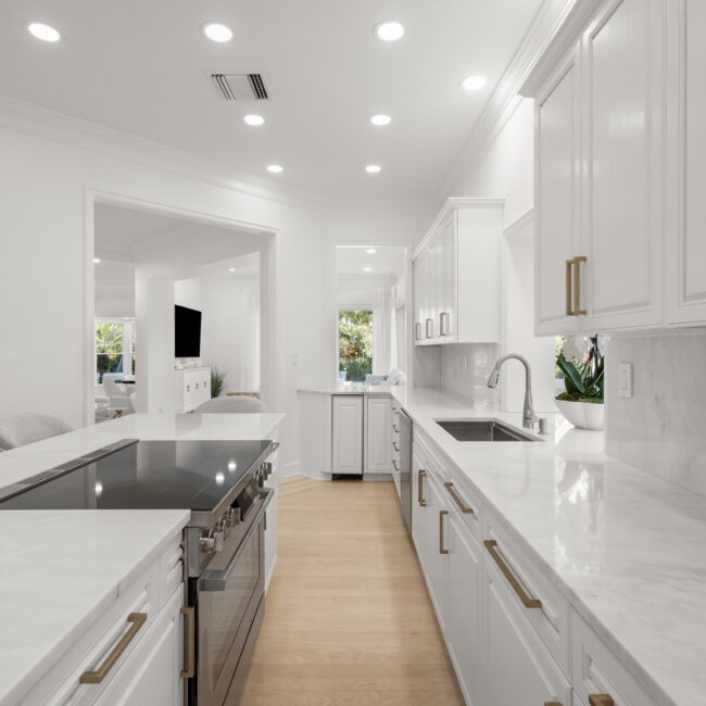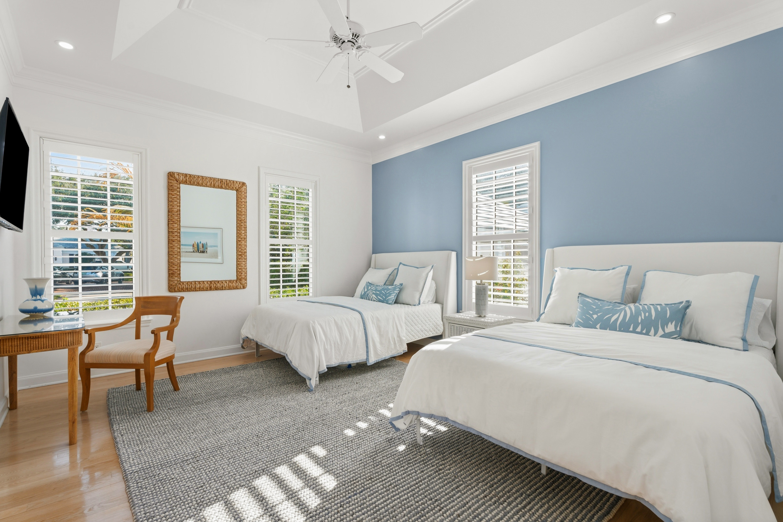 At the heart of the property, a lushly landscaped backyard oasis surrounds a sparkling pool and spa, offering ultimate privacy and tranquility. Tropical greenery, expansive patio areas, and covered outdoor living spaces provide multiple settings for dining al fresco, hosting guests, or simply unwinding in the ocean breeze. Inside, the thoughtfully designed floor plan features 4 spacious bedrooms and 5.5 well-appointed baths. Light-filled living areas showcase elegant finishes, refined architectural details, and a natural flow that enhances everyday living. The updated kitchen opens effortlessly to the main gathering spaces, making it equally suited for intimate family moments or larger-scale entertaining. The primary suite serves as a peaceful escape, while guest accommodations ensure comfort and privacy for family and visitors alike. Every element of the home has been curated to support a relaxed coastal lifestyle without sacrificing sophistication.