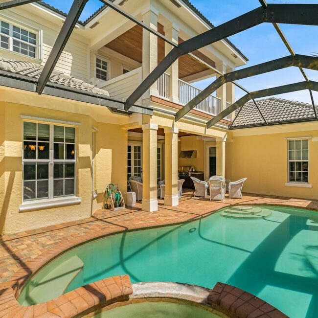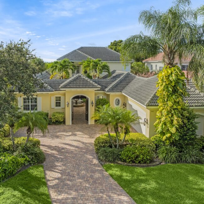 A rare opportunity to own in the highly coveted, private community of The Estuary. This residence offers more than 4,000 square feet of living space centered around a stunning courtyard complemented by a fabulous pool and spa for the ultimate Florida lifestyle. This home includes a highly sought-after dock slip at the community's private river access.