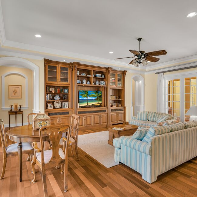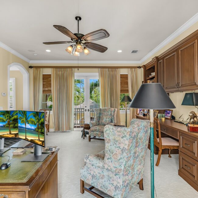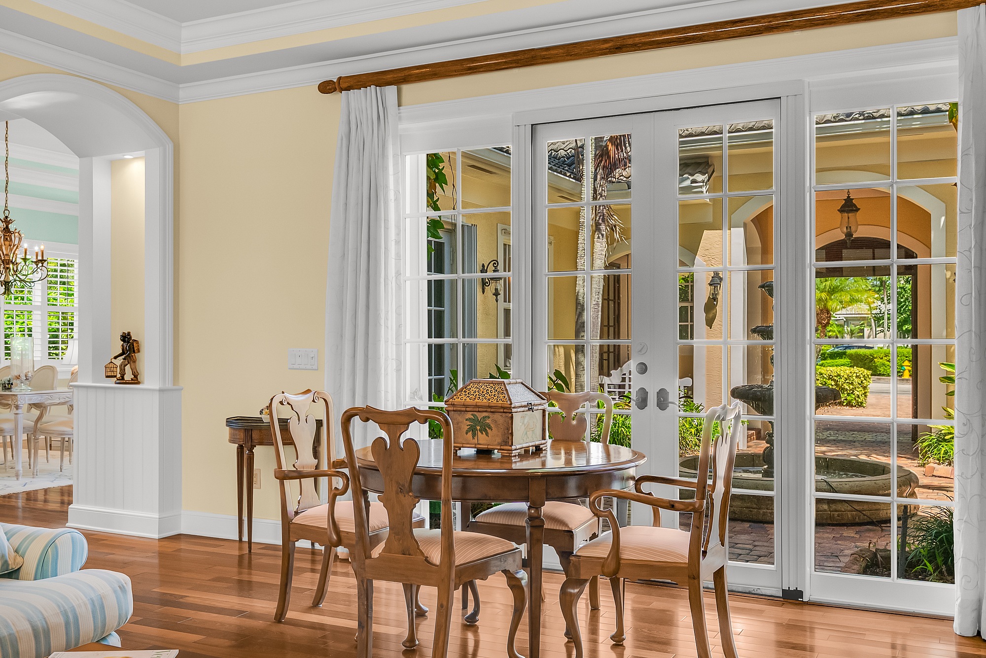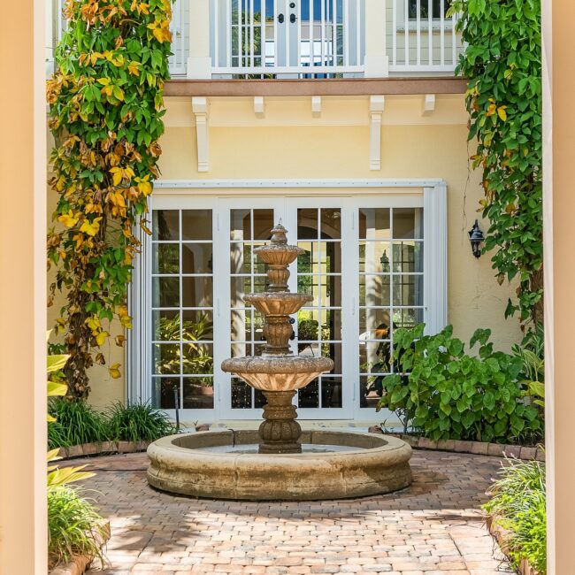 Outdoors, a beautifully landscaped open courtyard centered around a striking fountain provides a serene retreat, while the private pool and spa with a built-in grille create the ultimate setting for entertaining and enjoying Florida living. This residence offers the perfect combination of elegance, privacy, and an exceptional location.
