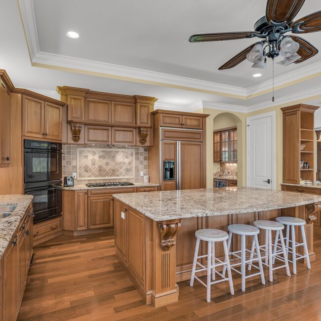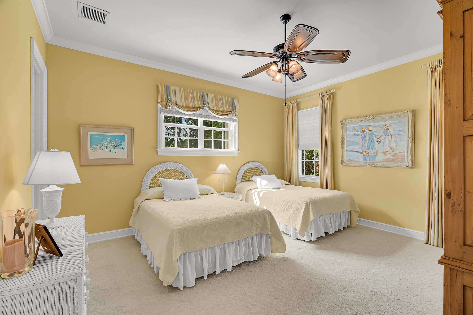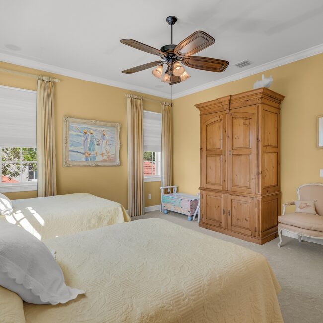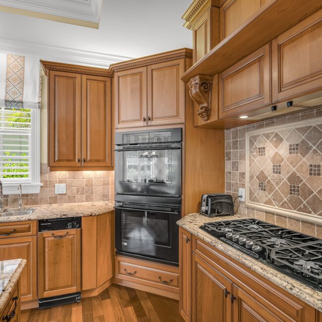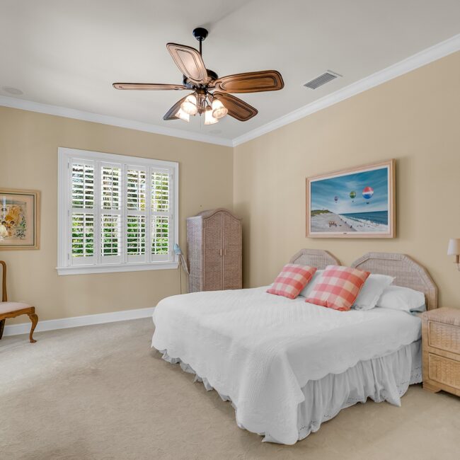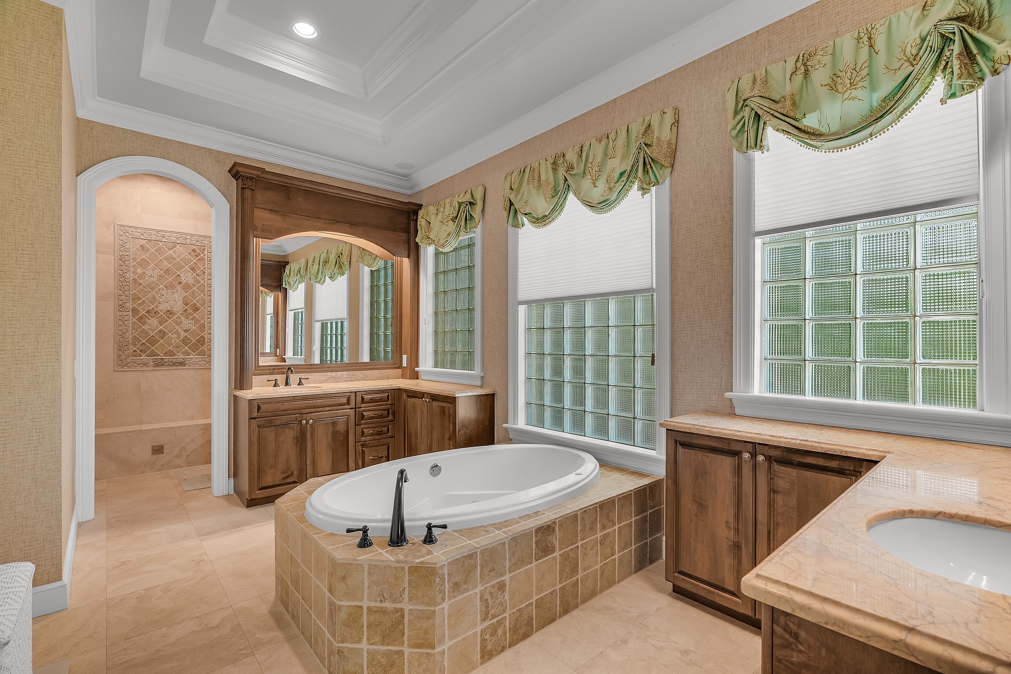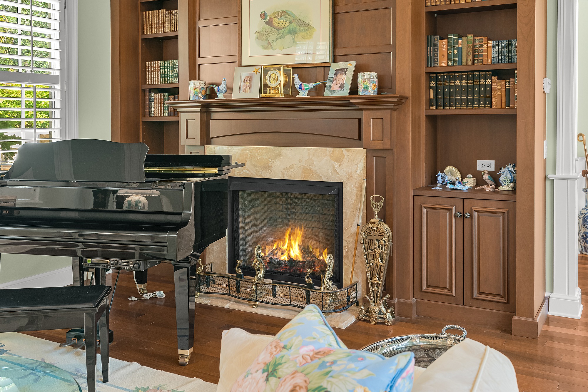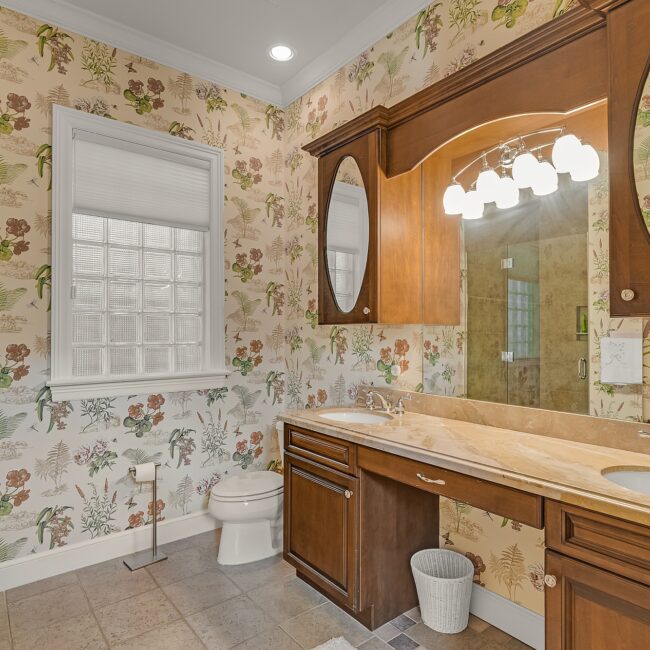 This beautifully maintained two-story residence showcases elegant architectural details and a thoughtfully designed floor plan. The first-floor primary suite offers a peaceful retreat, while a spacious guest suite with its own private bath and separate entrance provides privacy and flexibility. Soaring ceilings, custom built-ins in both the living and family rooms, and an open, light-filled layout create an inviting atmosphere for both everyday living and entertaining. The chef’s kitchen features a generous center island, gas range, wine cooler, and a cozy breakfast area overlooking lush greenery. Upstairs, a third ensuite bedroom and a large office/den open to a private balcony, perfect for working, relaxing, or enjoying tranquil views.