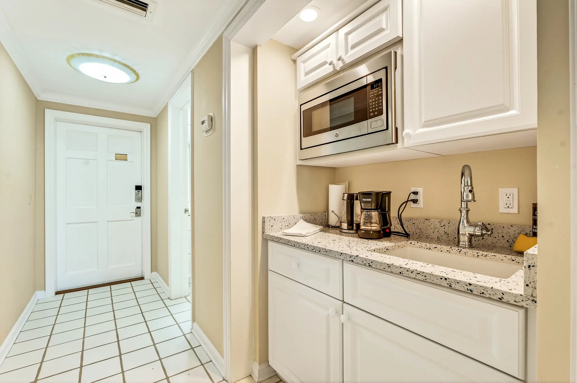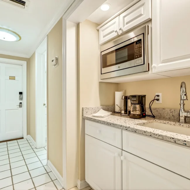 • Kitchenette with granite countertops, microwave, refrigerator, and coffee maker