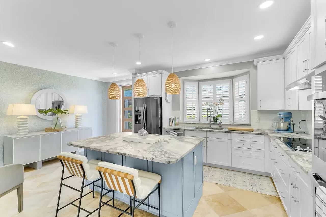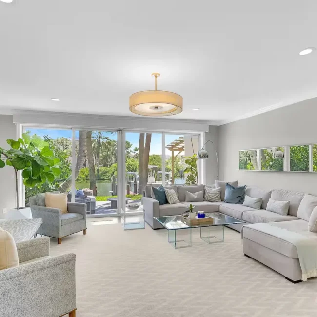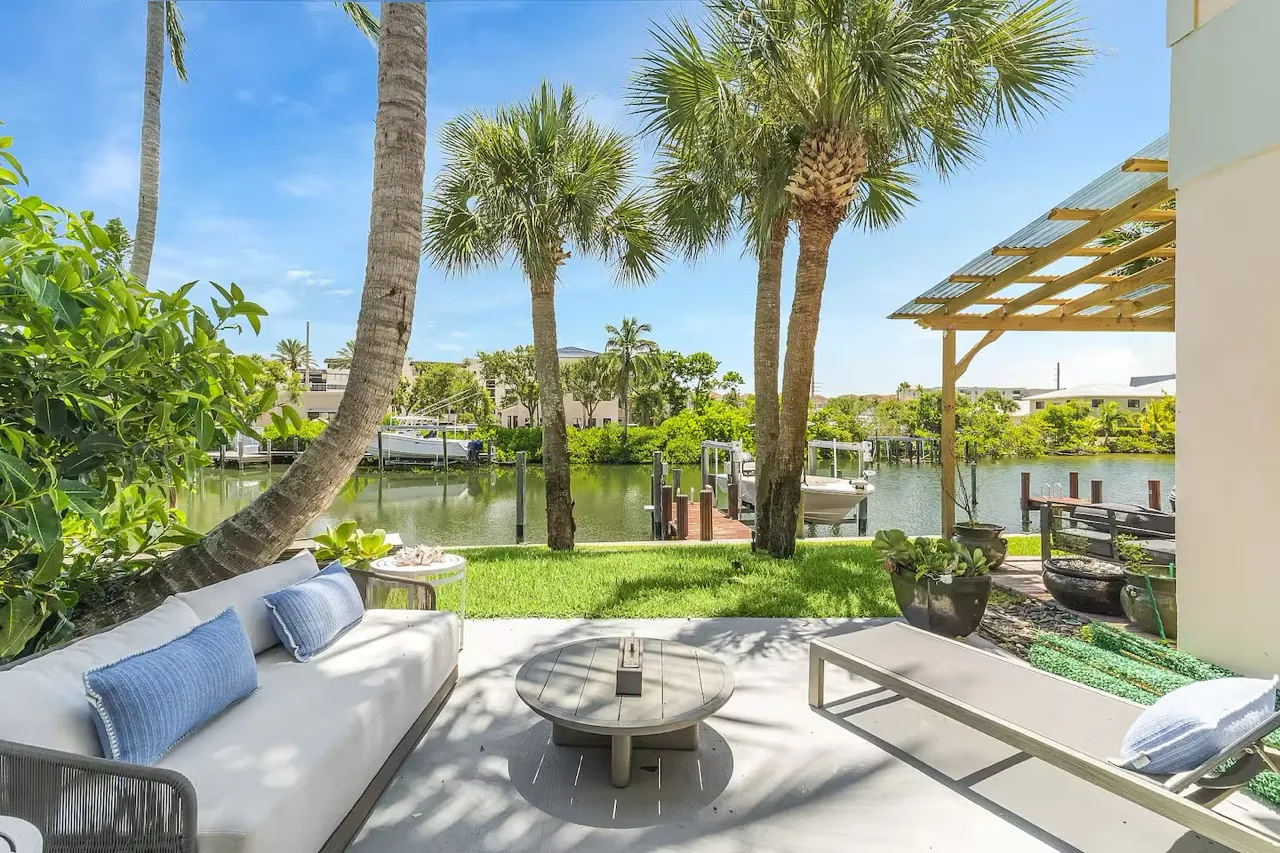 This three-level waterfront townhouse blends refined interiors with laid-back luxury just one block from the beach. Enjoy a private dock, firepit lounge, and swaying palms. Inside, find coastal-chic design, a stunning marble kitchen, spa-like baths, and a sunlit loft gym. Minutes from shops, cafés, and the marina—this is the perfect launchpad for your beachside lifestyle and daily adventure.